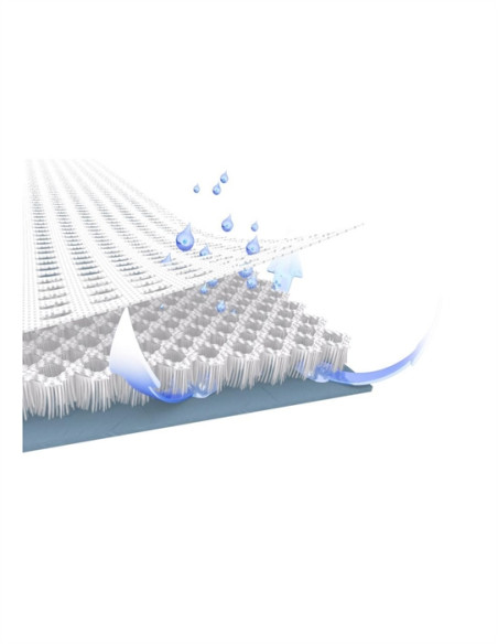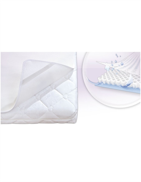 Ce protège-matelas est particulièrement absorbant et agréable pour la peau. Sa surface est composée de coussinets d'air 3D, grâce à quoi bébé reste sec et ne transpire pas..
