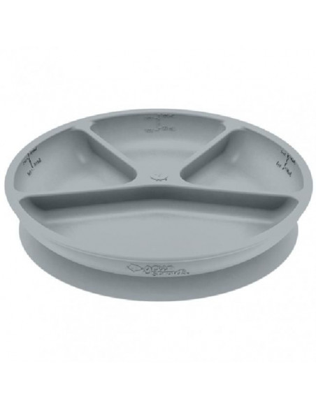 Assiette d'apprentissage compartimentée, en silicone avec base ventouse pour que ça "colle" à n'importe quelle surface lisse !