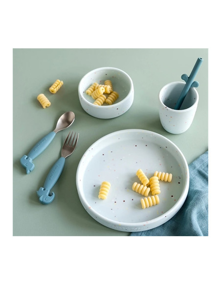 Set vaisselle en silicone Done By Deer - Confetti Blue