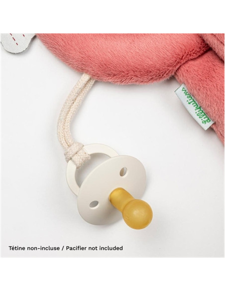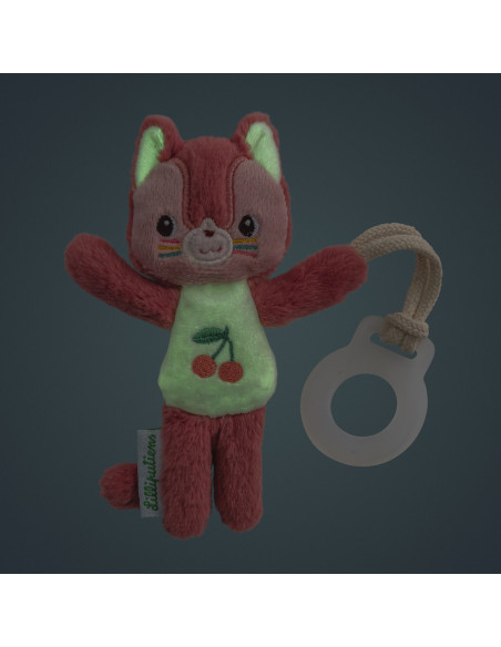 Plus qu’un attache-tétine, cette peluche chat peut aussi être utilisée comme doudou pour rassurer bébé tout au long de la journée. C’est aussi une extension qui lui permet d’attraper sa tétine plus facilement. Et quand vient la nuit, son petit ventre rond et ses oreilles brillent d’une douce lueur apaisante. Dans son format compact de 9 x 13 cm, ce chat en peluche est un concentré de douceur avec des teintes roses et une jolie frimousse ! Son attache en silicone est sûre pour les petits, dès la naissance. C’est le petit accessoire doux et malin qu’il vous fallait, ou qui fera plaisir aux parents, pour des nuits plus paisibles !