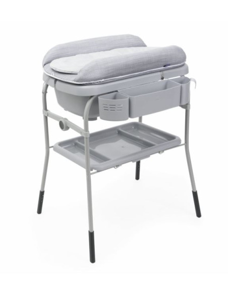 Ultra-pratique grâce au plateau et aux compartiments pour ranger tout le nécessaire pour le bain et le change.