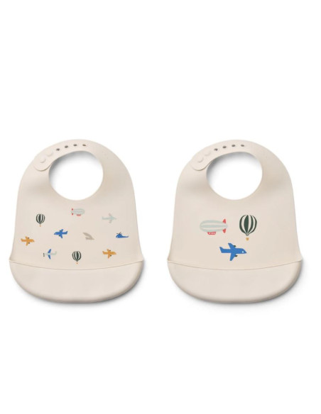Lot de 2 bavoirs en silicone décorés sur le thème des Avions.