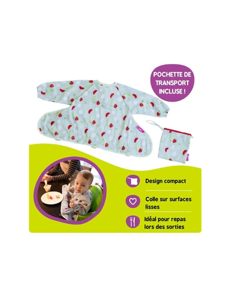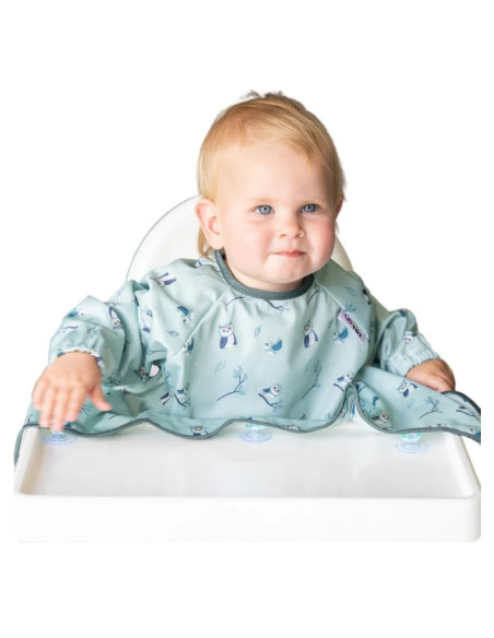 Le bavoir adhère à TOUTE surface lisse à l'aide d'une fixation à ventouse pour "attraper" les aliments tombés et les déversements - parfait pour l'alimentation en purée traditionnelle, le sevrage dirigé par bébé et l'apprentissage de l'auto-alimentation.