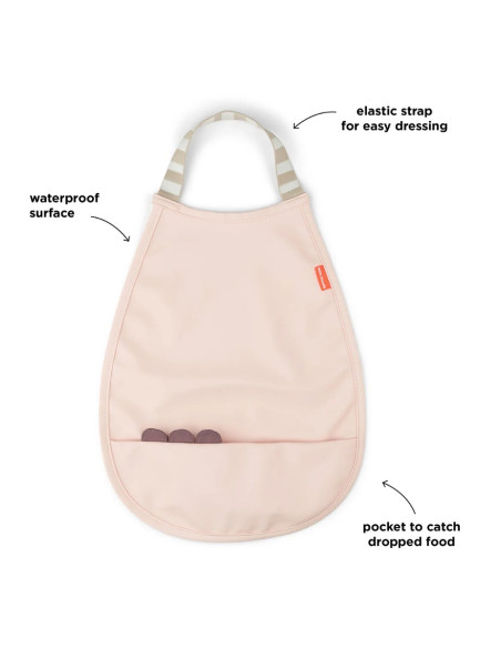 Ce bavoir pull-over à col élastique permettra aux tout-petits de l'enfiler et de l'enlever seuls - les encourageant ainsi à être plus autonomes.