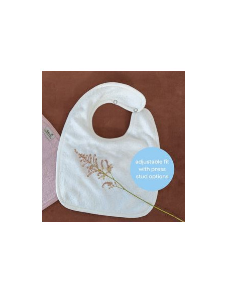 Ce bavoir imperméable est conçu avec deux couches : une couche extérieure en tissu éponge de bambou ultra-doux qui absorbe facilement les liquides, et une doublure imperméable qui garde les vêtements propres et secs.