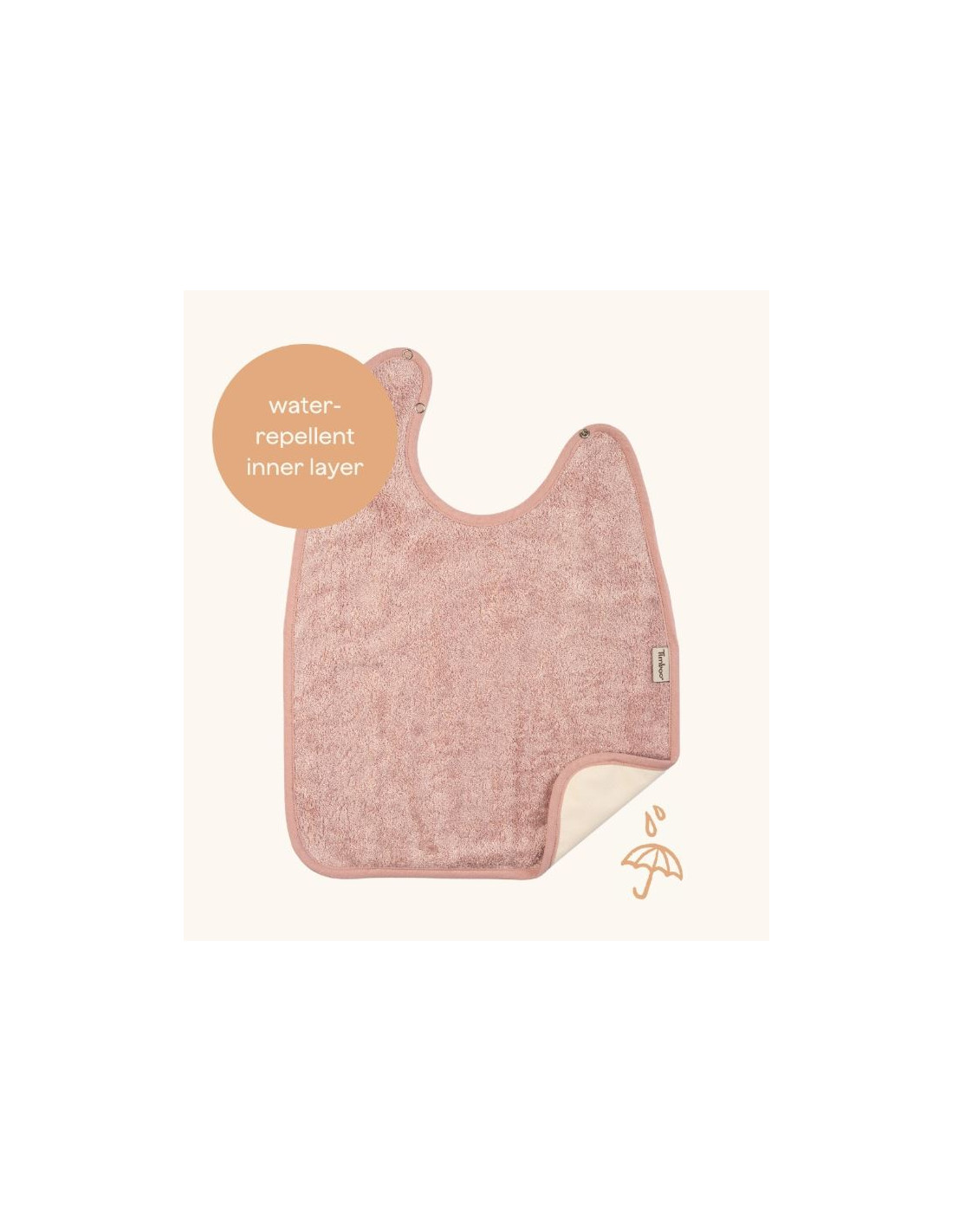 Ce bavoir imperméable est conçu avec deux couches : une couche extérieure en tissu éponge de bambou ultra-doux qui absorbe facilement les liquides, et une doublure imperméable qui garde les vêtements propres et secs.