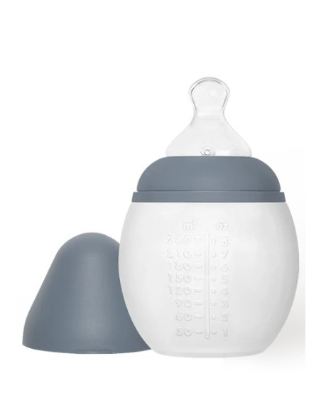 Biberon en silicone médical conçu pour minimiser l’exposition des bébés aux dangers des perturbateurs endocriniens.