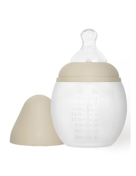 Biberon en silicone médical conçu pour minimiser l’exposition des bébés aux dangers des perturbateurs endocriniens.