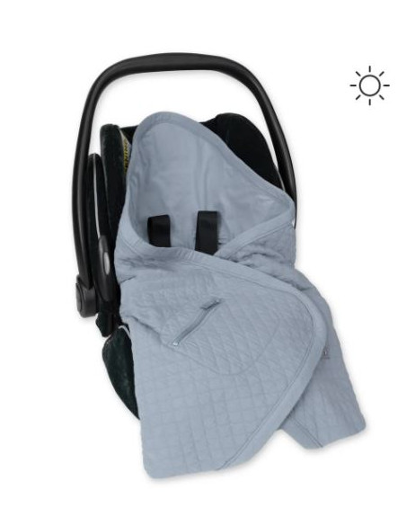 La couverture Biside s’adapte aux sièges auto du groupe 0 et 1, aux nacelles et poussettes 3 ou 5 points.