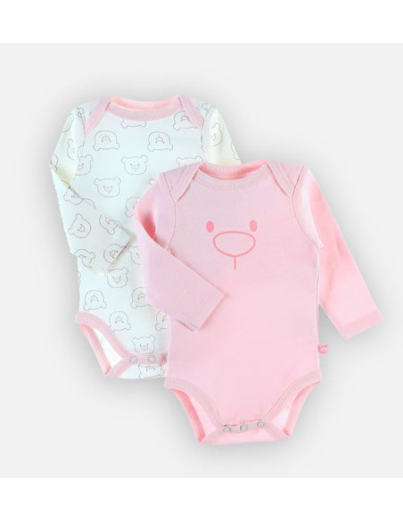 Bodys Bio Col US ML 2pces 18M - Ours Rose/Blanc