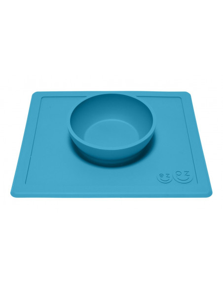 Un set de table et un bol, tout-en-un, en silicone de grande qualité. Il adhère directement à la table ou à la tablette des chaises hautes, ce qui le rend presque impossible à retirer par des petites mains.