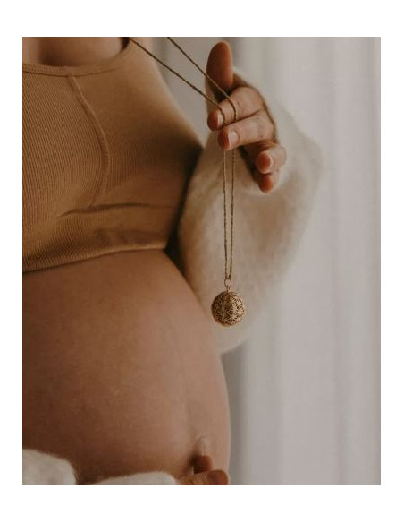 Bola de grossesse Fleur de Vie Jaune - Chaine Laiton plaqué Or 18 carats