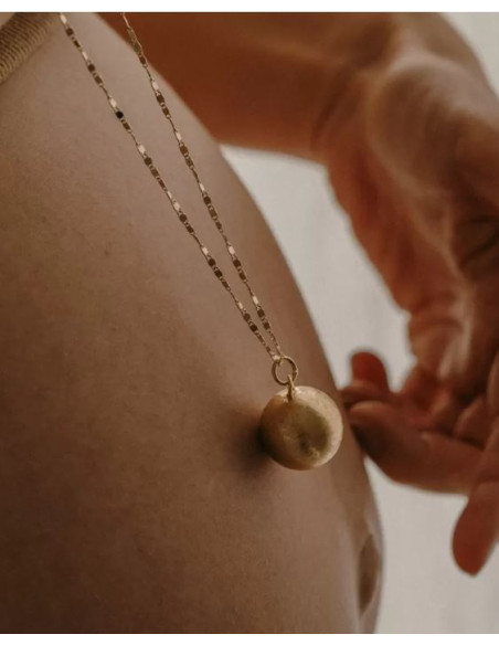 Ce merveilleux Bola dorée suspendue à une chaine facettée évoque le don de la nature et l'amour.