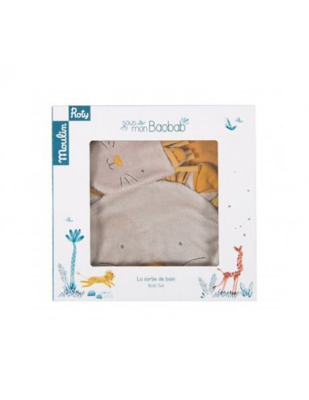 Cape de bain et gand de toilette assorti de la marque Moulin Roty.