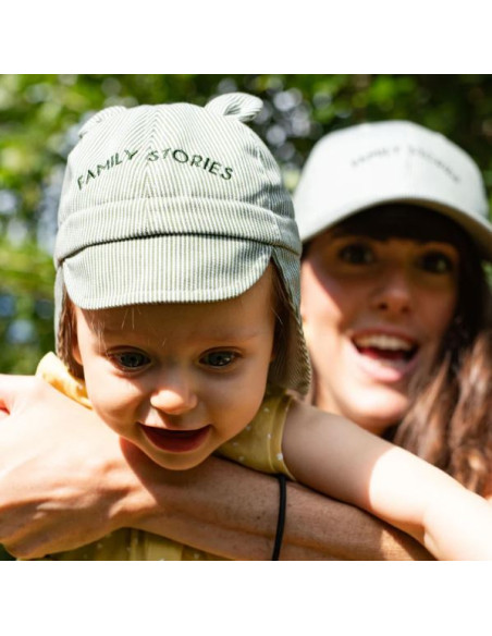 Pour les frangins frangines, il y a la casquette "Family Stories" à partir de 9 mois.