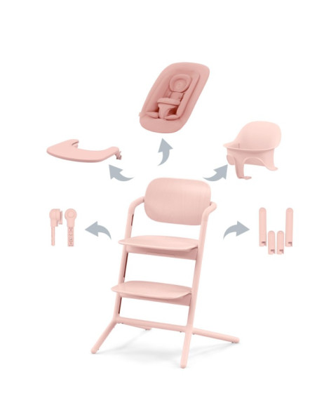 Chaise haute Lemo 2 bois 4 en 1 - Pearl Pink