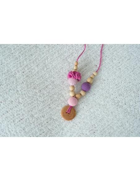 Magnifique collier d'allaitement et de portage 100% naturel en bois et perles au crochet coton.