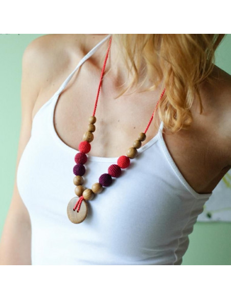 Collier allaitement - Button in All Shades of Red / Oak Wood