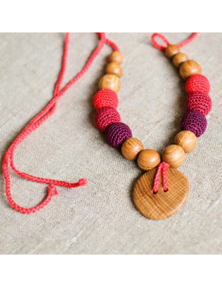 Magnifique collier d'allaitement et de portage 100% naturel en bois et perles au crochet coton.