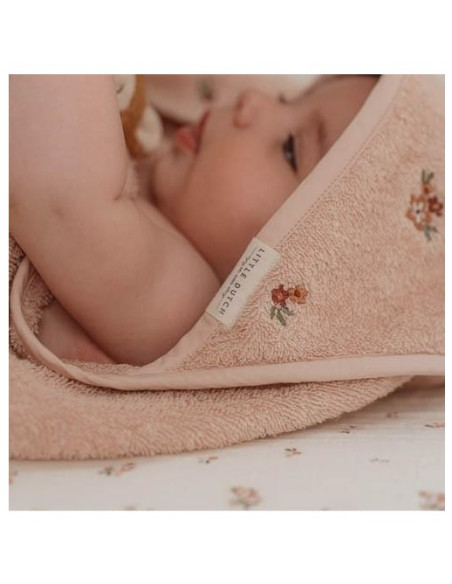 Fabriqué à partir de tissu éponge 100 % coton biologique pour une sensation merveilleusement douce et confortable. Conçue pour un usage à la fois pratique et charmant, la capuche douce offre sécurité et confort après le bain. La serviette a une belle couleur rose clair Blossom et la capuche est décorée de jolies fleurs brodées.