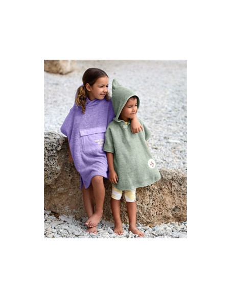 Ce poncho en éponge séduit par sa coupe confortable et son tissu éponge tout doux, pour un look cocooning à la plage ou à la piscine.