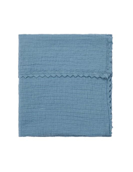 Couverture berceau 75x100cm dentelle Elba - Blue Stone