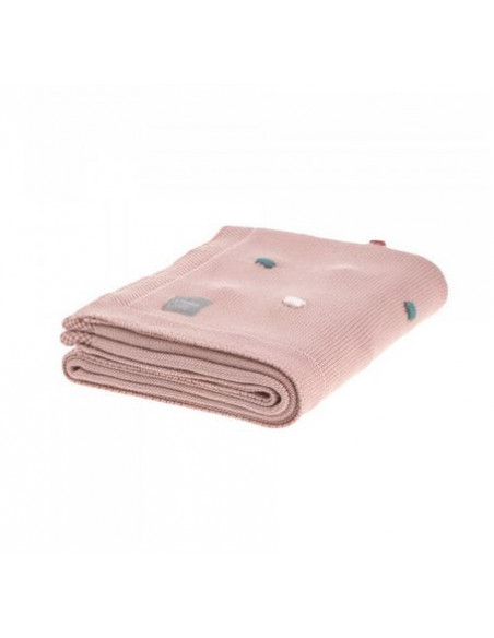 Couverture tricotée 75*100cm coton bio - Dots Dusky Pink