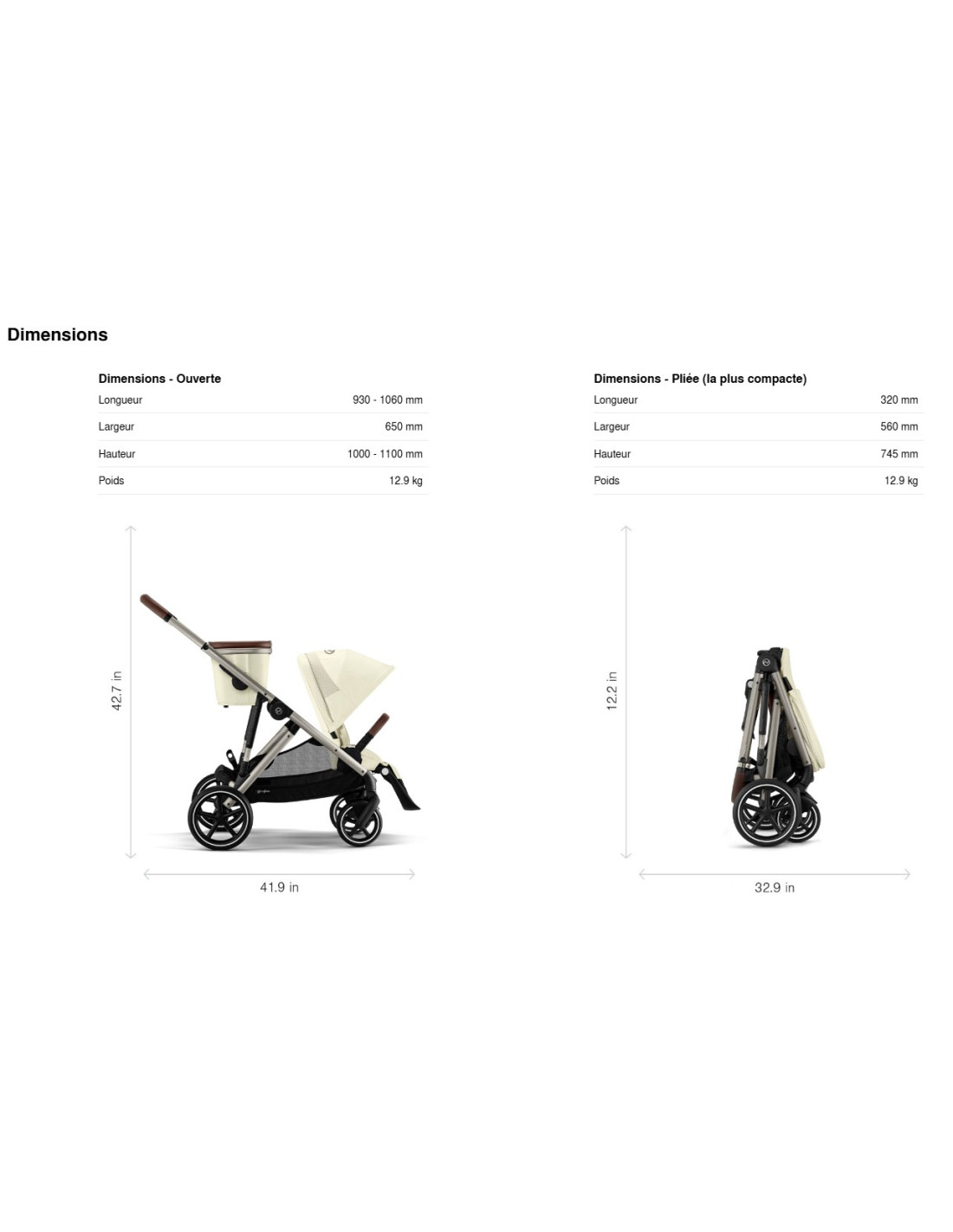 - Pliage compact (L65 x l35 x H86).