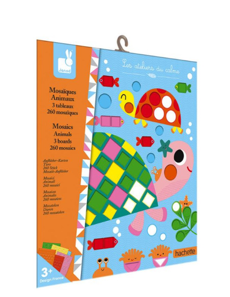 Issu de la collection "Les Ateliers du Calme", ce kit contient : 3 tableaux à décorer, 260 mosaïques en mousse de 6 couleurs différentes et 1 livret avec les instructions et les modèles.