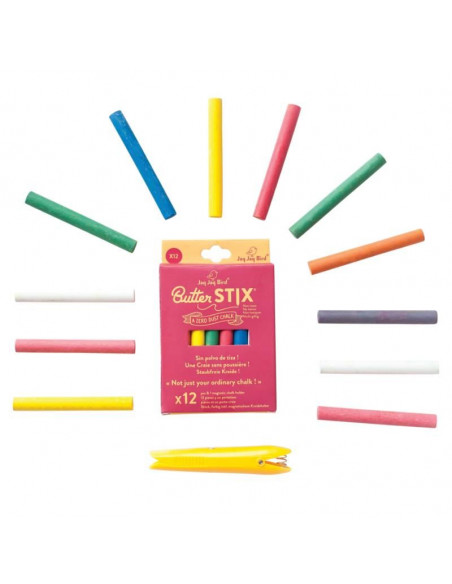 Cet ensemble comprend douze ButterStix de couleurs assorties, associés à un support ButterStix.
