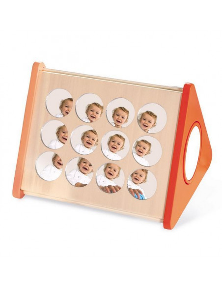Ce jeu en bois original contient divers types de miroirs et loupes, pour découvrir son environnement d'une façon ludique! De 1 à 3 ans.