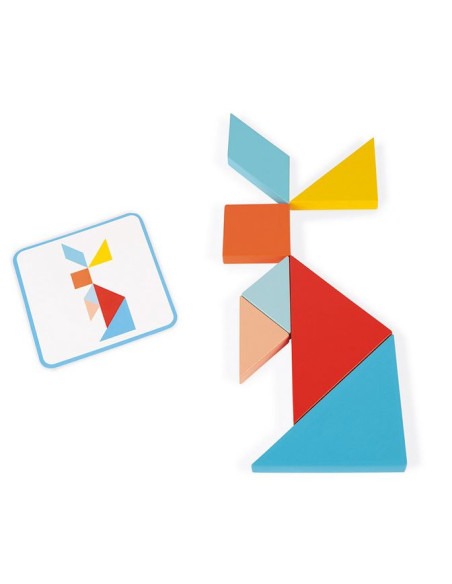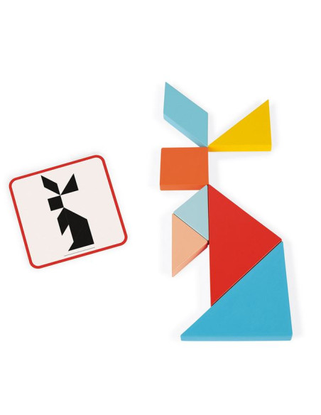 Un tangram en bois pour les petits de 2 à 5 ans! Plateau en bois antidérapant et deux niveaux de difficulté pour développer concentration et observation.