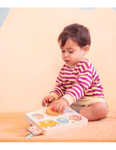 Cette valisette pleine de petites astuces pour stimuler la motricité fine se transporte facilement.