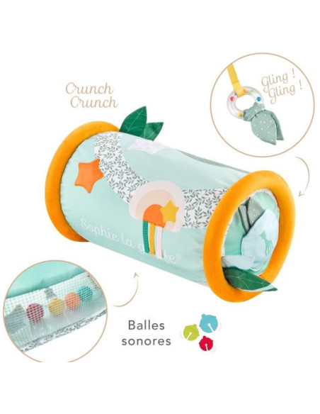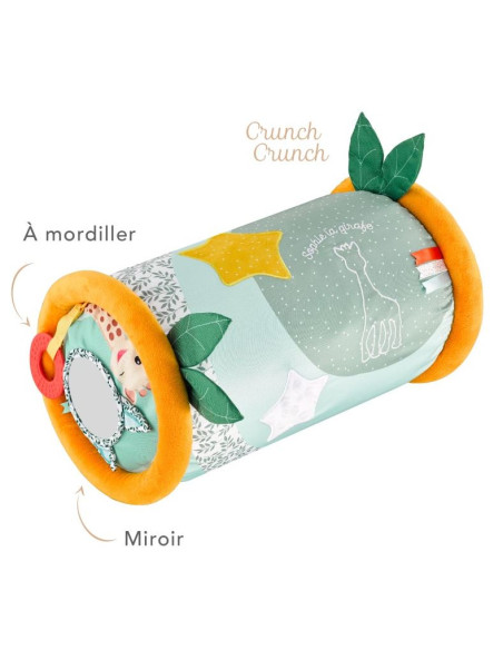 Allongé, assis, ou debout bébé s'amuse avec le rouleau en toute sécurité grâce à ses rebords molletonnés.