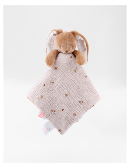 Ce doudou Moka est conçu de manière spéciale avec deux visages différents : l'un avec les yeux ouverts et l'autre avec les yeux fermés. Cette conception astucieuse permet à l'enfant d'associer le visage avec les yeux fermés au moment du coucher, ce qui peut l'aider à comprendre qu'il est temps de dormir.