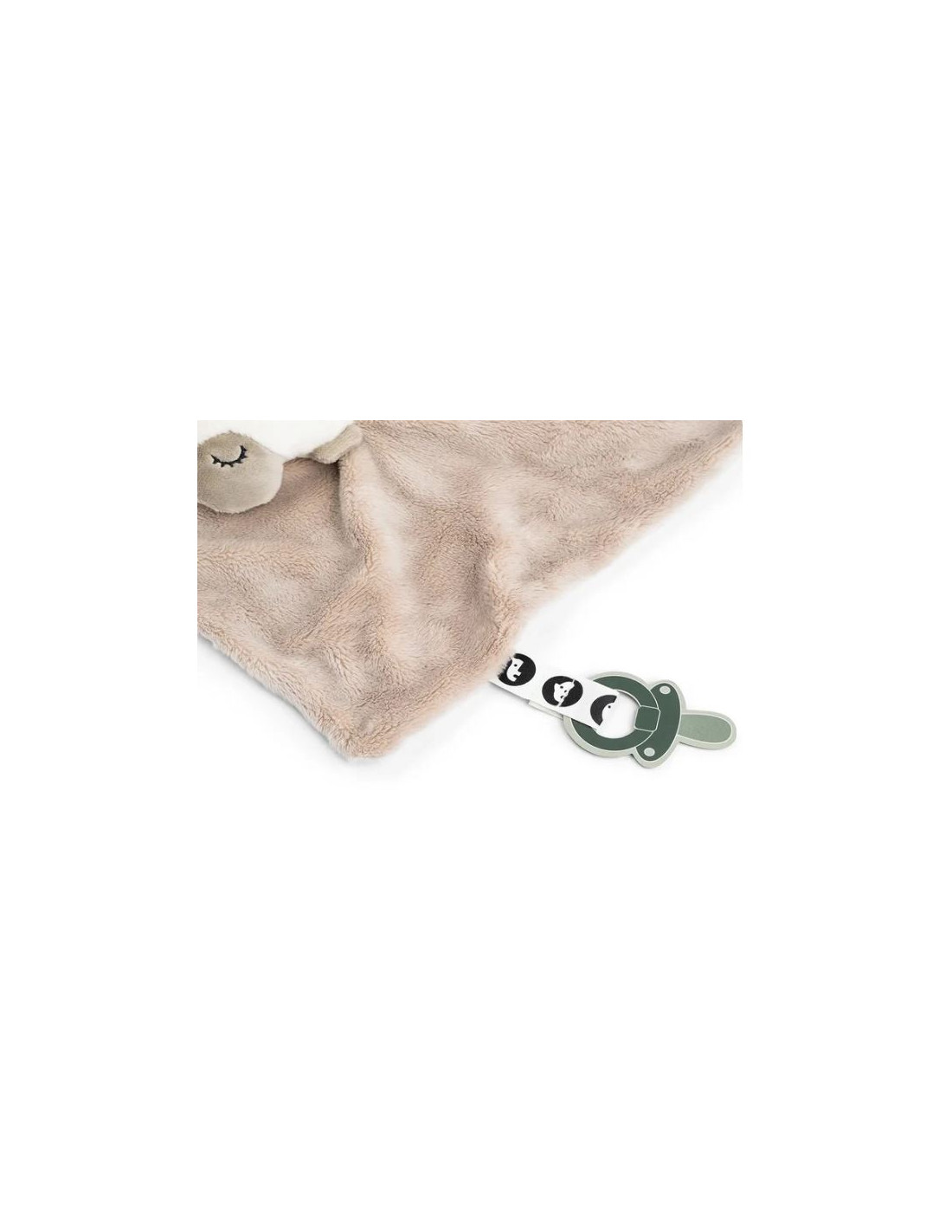 Grâce à la fermeture Velcro, la tétine est toujours à portée de main