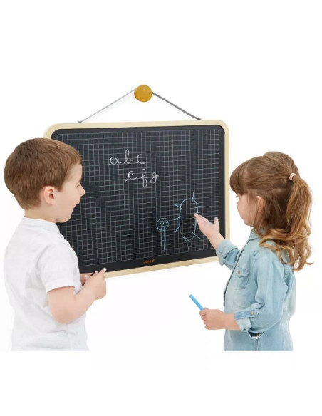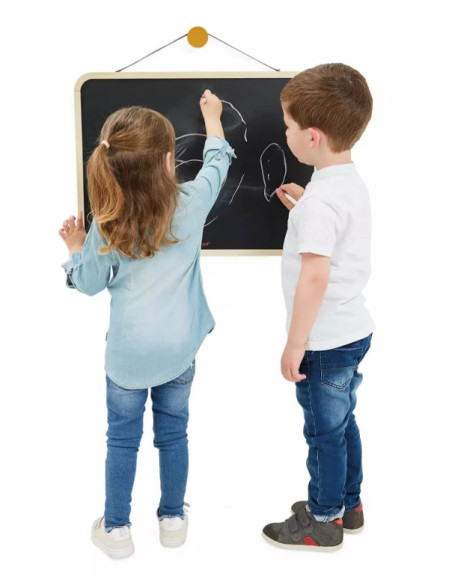 Pas besoin de choisir entre le dessin et l'écriture : ce tableau en bois est double-face !