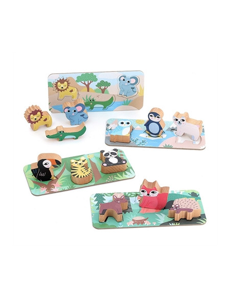 Finie la pêche ? Passez alors à un jeu de loto, chaque animal s'encastrera à sa place dans la forêt, la savane, la jungle ou la banquise.