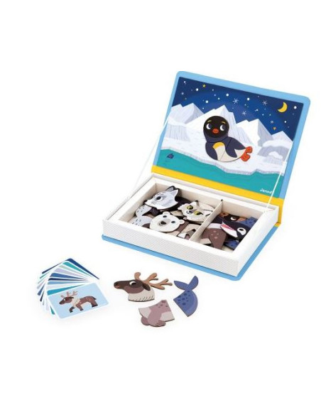 Coffret magnétique sur le thème des animaux polaires. Jeu éducatif, simple à utiliser et facile à ranger! En carton, marque Janod.