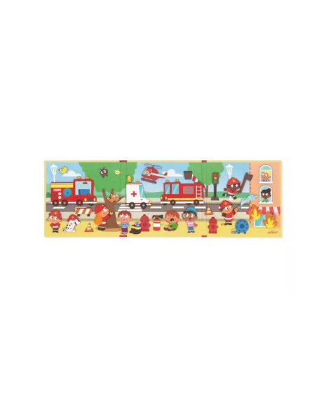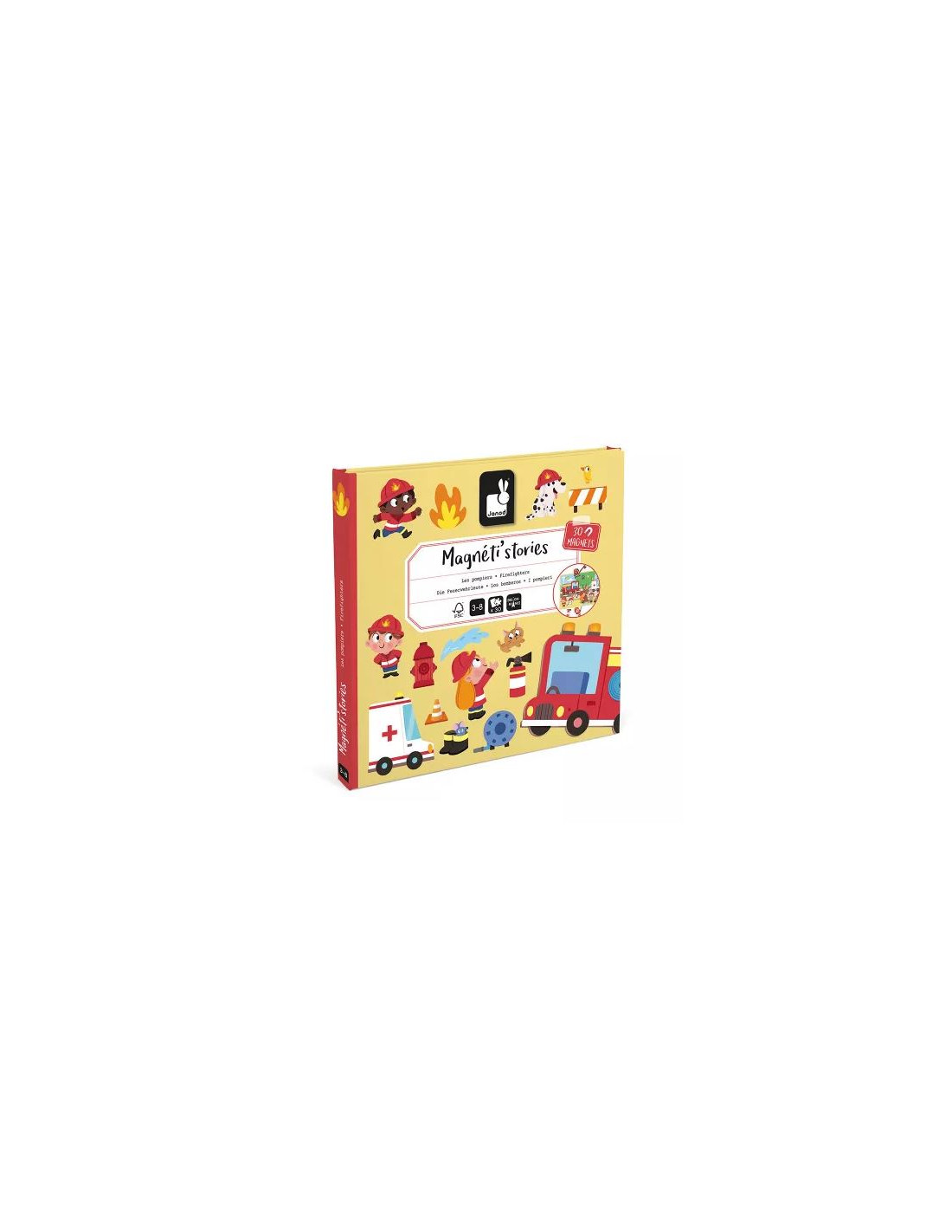 Un petit chat à sauver, le feu à éteindre, le gros bobo d’une enfant ... Heureusement, les pompiers sont là pour gérer la situation ! Ce jeu magnétique ravira vos enfants, les invitant à s'imaginer en vrais petits pompiers, dès l’âge de 3 ans. Ce jeu aimanté se compose d’une planche illustrée aux couleurs des soldats du feu ainsi que de 30 magnets à venir déposer sur le décor. Une fois déposés, les aimants vont peu à peu prendre vie grâce à l’imagination de votre enfant. Le petit chat se mettra à miauler et la petite fille sèchera finalement ses larmes grâce à l’intervention des pompiers ! Ce grand décor est pliable, le rendant alors facilement transportable. Une fois glissé dans le sac à dos ou dans la voiture, il n’y aura plus aucunes barrières à l’imagination de votre apprenti pompier. Une fois les aimants placés sur le support et l’histoire murement préparée, votre enfant se fera une joie de dresser le décor à la verticale pour vous la conter. Ce jeu aimanté sur le thème des pompiers fait partie de la grande collection des Magnéti'stories, de véritables invitations à l’imagination. Ce jeu magnétique est composé de carton certifié FSC™ ainsi que de matériaux contrôlés.