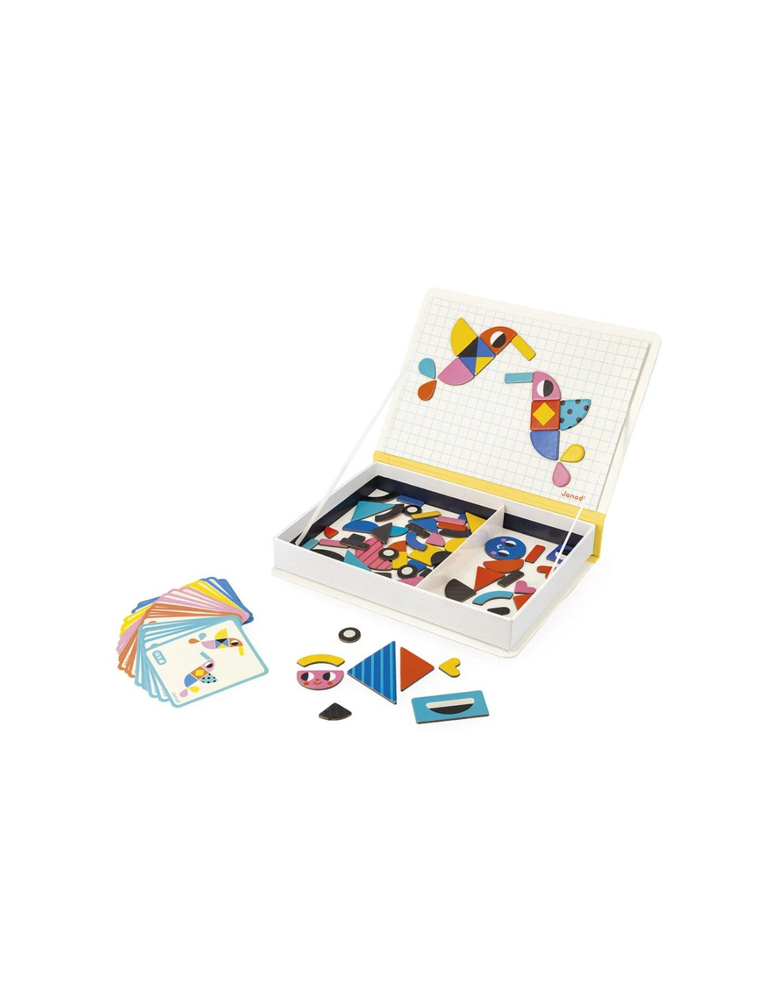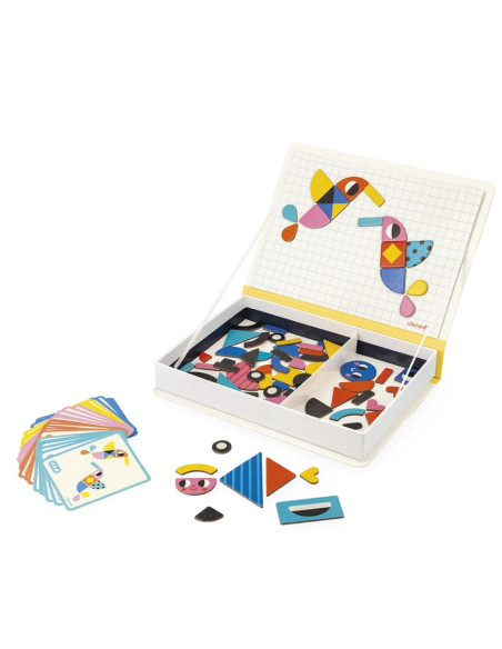 Hop, une forme bouge… et tout change ! Le Magnéti'book tangram propose 85 magnets colorés pour permettre aux enfants dès 3 ans de créer de nombreuses figures amusantes : oiseaux, personnages, véhicules… et bien plus encore !