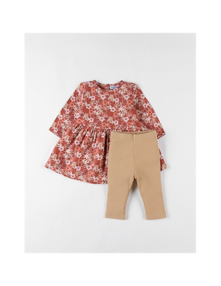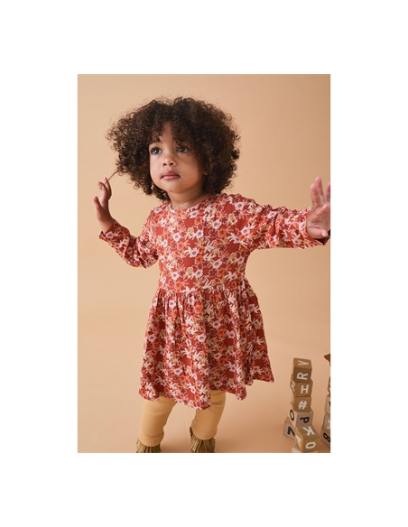 Confectionné avec soin, cet ensemble adorable comprend une robe en tulle de viscose ornée d'un imprimé fleuri ainsi qu'un legging camel en jersey côtelé ultra-élastique.