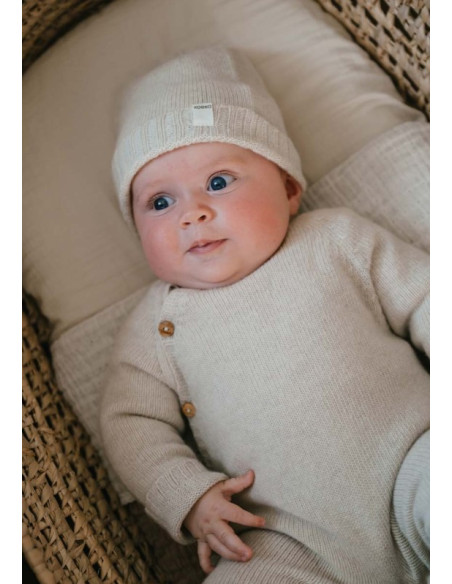 Cet ensemble de bébé tricotés est un véritable objet de collection et apporte une sensation de luxe ultime : le mélange de pure laine mérinos respirante et de cachemire doux et soyeux est super doux pour la peau sensible de bébé.
