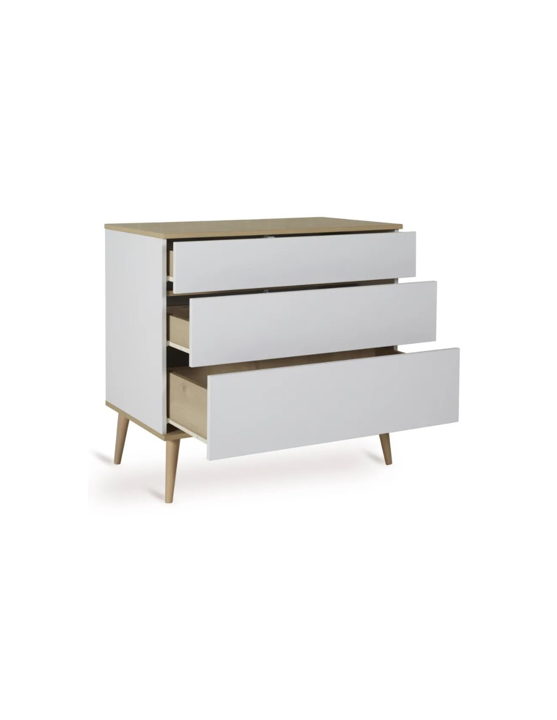 Munie de 3 tiroirs sans poignée s'ouvrent sans effort, grâce au système de poussée pratique.