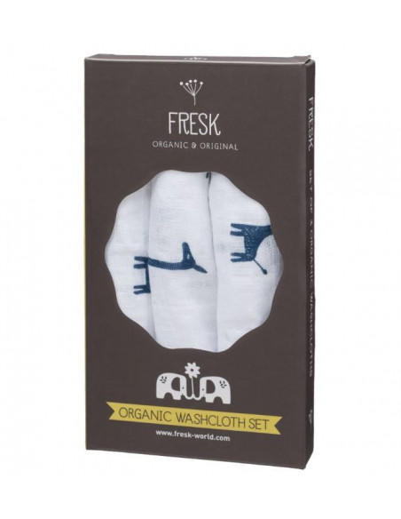 Set de 3 Gants de toilette Coton Bio - Giraf indigo blue