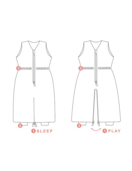Gigoteuse ingénieuse, avec manches amovibles et jambes séparables si besoin.