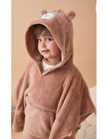 Le poncho d'intérieur brun, doublé en Groloudoux®, est un véritable cocon de douceur pour votre enfant.