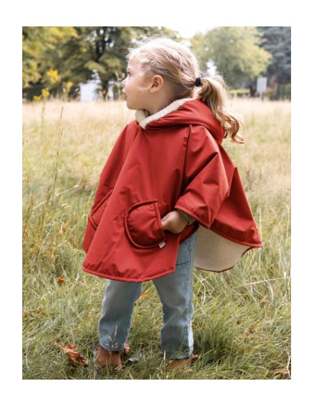 Coupe-vent et imperméable, le poncho en tissu coating apporte une protection contre la pluie et la neige. Doublé d'un doux et moelleux teddy, il est bien chaud et très confortable.