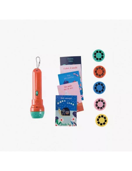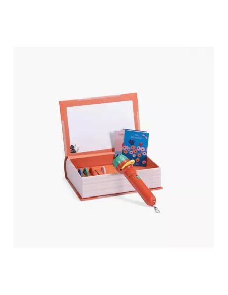 Ce coffret magnétique avec écran de projection est conçu comme un livre. Il contient 1 lampe à projeter, 5 disques sur l'univers des comptines et 5 petites cartes pour chanter.