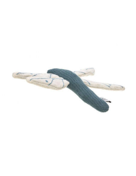 Compagnon dès les premiers mois de votre enfant, cette petite libellule en coton tricoté stimulera son toucher et son ouïe avec son petit grelot intégré.